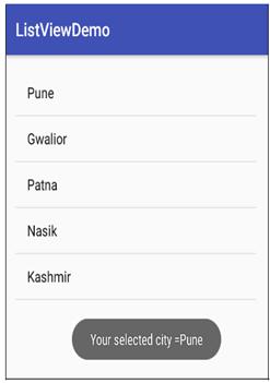 Toast toast = Toast.makeText(getApplicationContext(),"Your selected city ="+item,Toast.LENGTH_LONG);