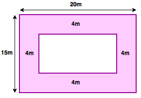 5. Sheetal has a rectangular piece of cloth with dimensions 20 m and 15 m. She wants to paint a border of breadth 4 m inside the four sides of the rectangle. The paint would cost her Rs 6 per sq m. Find the cost of painting the complete border.