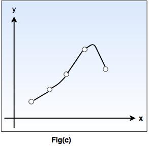 So, in the following fig-a, points (x,y) are given in plane so that y = ƒ(x), and the task is to find a function h(x) that fits the point well.