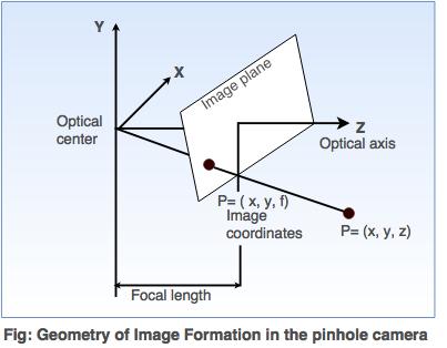 Let's understand the geometry of a pinhole camera shown in the following diagram.
