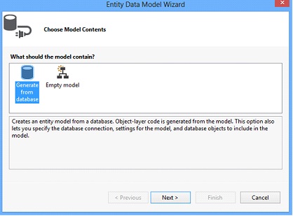 Step 4: Entity data model wizard will open. Select generate from database icon and click next.