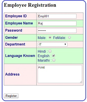 Let us see one example that will cover Textbox, dropdownlist, label, password, and radiobutton html helper.