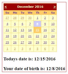 Label2.Text = "Your date of birth is: " + Calendar1.SelectedDate.ToShortDateString();