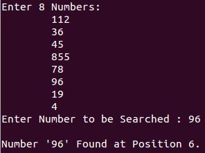 printf("\nNumber '%d' Found at Position %d.",n,i+1);