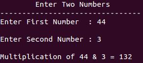 printf("\nMultiplication of %d & %d = %d",num1,num2,mul);
