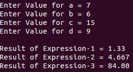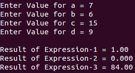 printf("\nResult of Expression-1 = %.2f\n",x);