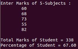 printf("\nTotal Marks of Student = %d ",Tot_marks);