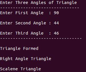 if(a1+a2+a3==180) // condition to check triangle formed or not