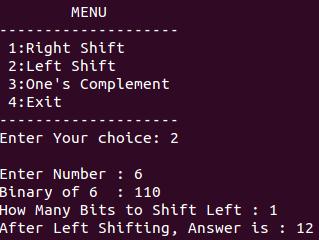 printf("\n 2:Left Shift ");