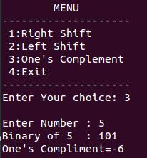printf("\n 3:One's Complement ");