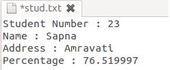fprintf(fp,"%d\n%s\n%s\n%f",s.rno,s.name,s.add,s.per);