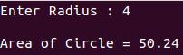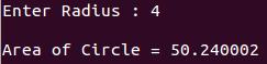 In the above output, we can fix the digit after decimal points while printing the area of circle. If we want to fix 2 digit after decimal point then use .2 (point two) in following statement.