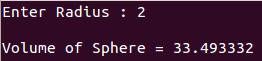 printf("\nVolume of Sphere = %f",volume_sphere);