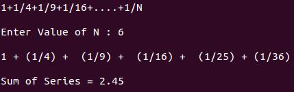 printf("1+1/4+1/9+1/16+....+1/N");