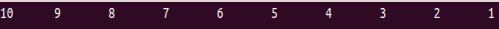 #include<stdio.h> int main() { int i=1; for(i=10;i>=1;i--) { printf("%d\t",i); // \t gives the space between numbers. } return 0; }