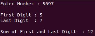printf("\nFirst Digit : %ld \nLast Digit : %d",n,l);