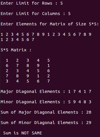 printf("Sum of Minor Diagonal Elements : %d\n\n",s2);