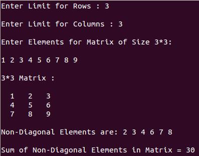 printf("\n\nSum of Non-Diagonal Elements in Matrix = %d",s);