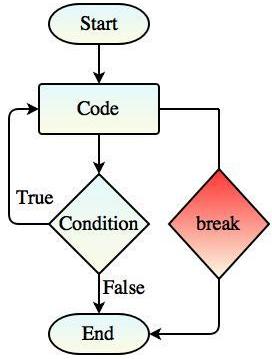 - Whenever the compiler comes across the break statement, the control is passed to the statement that follows the loop in which this statement appears.