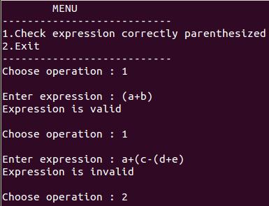 printf("1.Check expression correctly parenthesized\n2.Exit\n");
