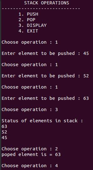 printf ("poped element is = %d\n", s.stk[s.top]);