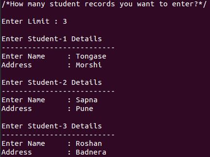 printf("\n%-10s\t%3s\n",s[i].name,s[i].add);