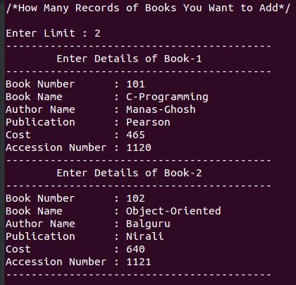 printf("/*How Many Records of Books You Want to Add*/\n\nEnter Limit : ");