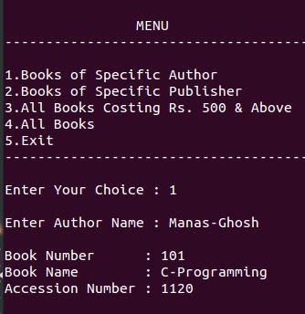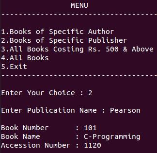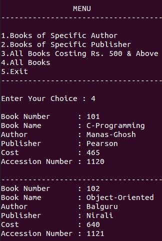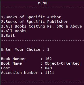 printf("\n3.All Books Costing Rs. 500 & Above");