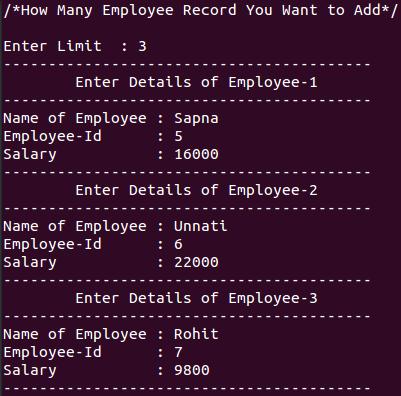 printf("/*How Many Employee Record You Want to Add*/\n\nEnter Limit : ");