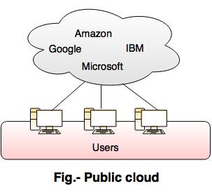 - In the public cloud, systems and services are accessible to the general public. For example, Google, IBM, Microsoft etc.