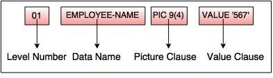 - Level number, Data name, Picture clause and Value clause are used to describe an elementary item.