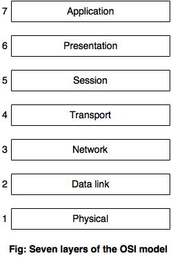 - OSI model has seven separate but related layers : Physical, Data link, Network, Transport, Session, Presentation and Application.
