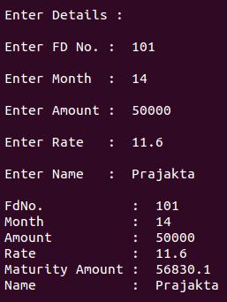 cout<<"\n Maturity Amount : "<<m_amt;