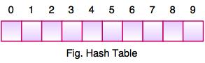 - The above figure shows the hash table with the size of n = 10. Each position of the hash table is called as Slot. In the above hash table, there are n slots in the table, names = {0, 1, 2, 3, 4, 5, 6, 7, 8, 9}. Slot 0, slot 1, slot 2 and so on. Hash table contains no items, so every slot is empty.