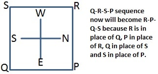 P moves to diagonally opposite place. Q moves two sides of carpet in clockwise direction. S moves 3 sides of carpet in anti-clockwise direction while R moves one side in anticlockwise direction. The configuration Q-R-S-P now becomes