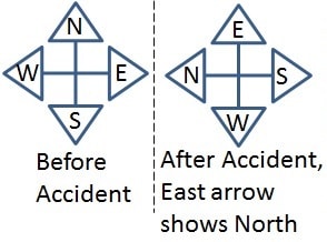 18. At a road crossing, there were 4 arrows denoting the four directions. But due to an accident the arrows turned in such a way that now East arrow is showing North. Ajay wanted to go towards West and followed the arrows at the crossing. In which direction is he now actually traveling?