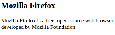 <p>Mozilla Firefox is a free, open-source web browser <br> developed by Mozilla Foundation.</p>
