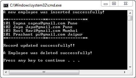 String sql = "INSERT INTO emp (emp_id, empname, email, city) VALUES (?, ?, ?, ?)";