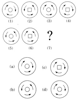 First arrow of top left side points clockwise in (1), then anti-clockwise in (2) and again clockwise in (3). Then repeats this in (4), (5) and (6). So it should be clockwise in (7)