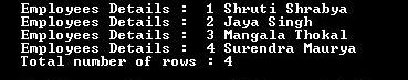 The above code will display the total number of selected fields and shows the total number of rows present in the table.