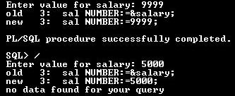 WHEN no_data_found THEN dbms_output.put_line('no data found for your query');