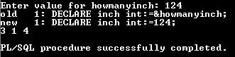 dbms_output.put_line(yard||' '||feet||' '||inch);