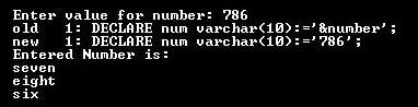 BEGIN dbms_output.put_line('Entered Number Is: ');