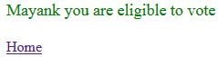 pw.println("<font color='green' size='4'>"+name+" you are eligible to vote</font>");