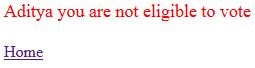 pw.println("<font color='red' size='4'>"+name+" you are not eligible to vote</font>");