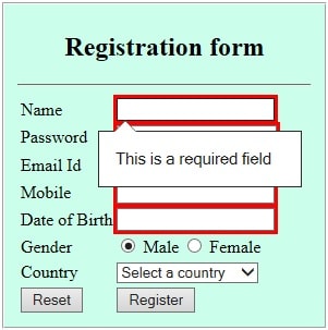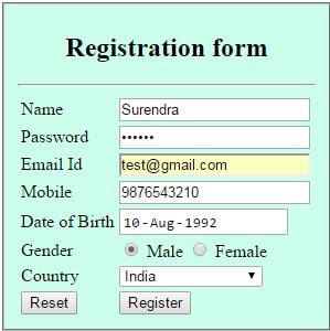 <input type="radio" name="gender" value="female"> Female </td></tr>