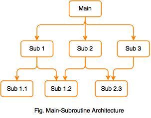 - Main-subroutine reuses the subroutines and have individual subroutines developed independently.