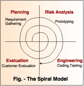 - Every phase in the Spiral model is start with a design goal and ends with the client review.