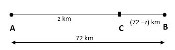 ∴ z = 68 km ∴ Distance between B and C = 72 - z = 72 - 68 = 4 km